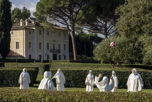Un grupo de monjas disfruta de una sesión de deporte en los jardines del Vaticano en una secuencia de 'The New Pope'.