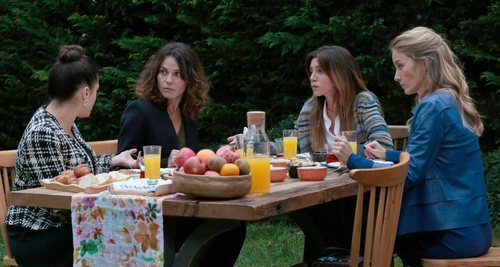 Las cuatro mujeres protagonistas de la serie de turca de Divinity 'Stiletto Vendetta' desayunan y conversan en el jardín.