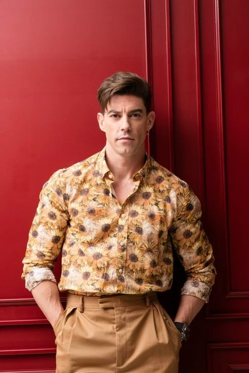 Adrián Lastra con una camisa de margaritas para Dear Magazine