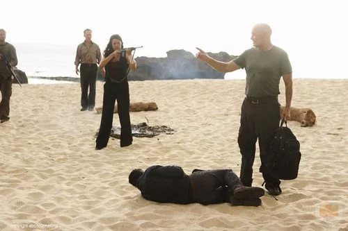 Ilana apunta al falso Locke con un arma