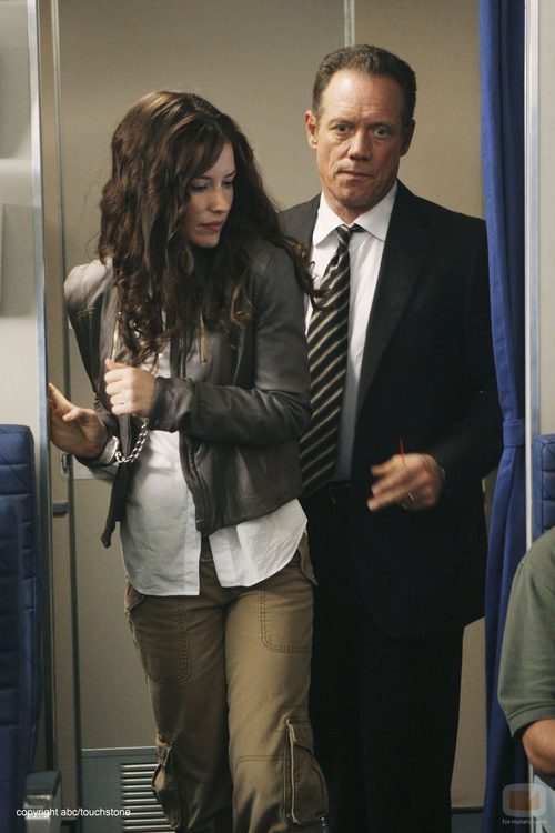 Kate es esposada en el avión en el que viajaba en el capítulo "LA X" de la sexta temporada de 'Perdidos' ('Lost').