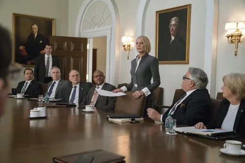 Tras la muerte de su marido, Frank Underwood, mientras estaba en el cargo, Claire le sustituye y se convierte en la primera mujer Presidenta de los Estados Unidos en la serie de Netflix.