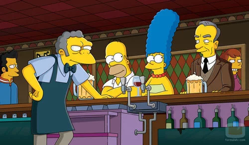El matrimonio Simpson en el bar habitual de Moe, al que acude Hommer.