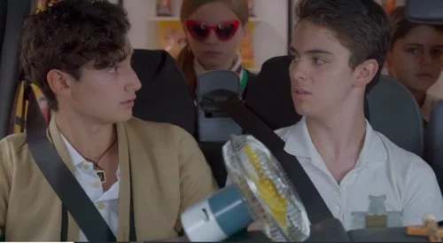 Aris y Temo durante un viaje en una de las escenas de 'Mi marido tiene más familia', telenovela protagonizada por Zuria Vega y Daniel Arenas.