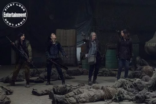 The first image shows Rosita (Christian Serratos), Lydia (Cassady McClincy), Carol (Melissa McBride) y Maggie (Lauren Cohan) en la undécima y última temporada de 'The Walking Dead'.