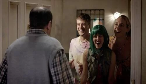 Jordi Sánchez, Jaime Riba, Elisabeth Larena y Álex de la Croix, durante una escena de la temporada 13 de la serie de Contubernio Films.