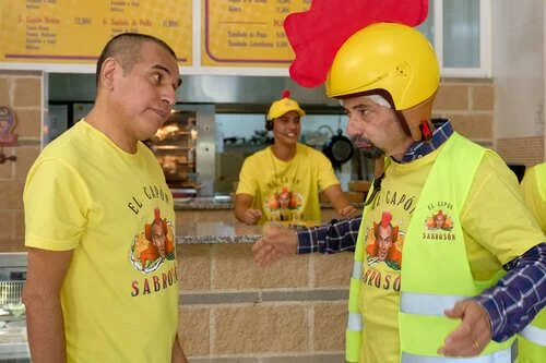 Carlos Alcalde y Jordi Sanchez, en una pollería de 'LQSA 13'