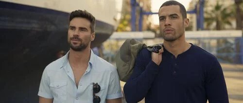 Los intérpretes de Iván y Hugo pasean por el puerto en la temporada 2 del thriller erótico de Atresplayer Premium.