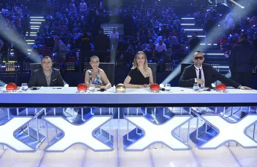Jorge Javier Vázquez, Risto Mejide, Edurne, y Eva Hache forman el jurado de la tercera edición de 'Got Talent España' y posan en la primera gala en directo de semifinales.