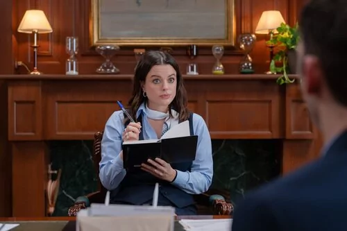 Manuela (Adriana Torrebejano) presta atención y toma anotaciones en uno de los capítulos de la tercera temporada de la serie.