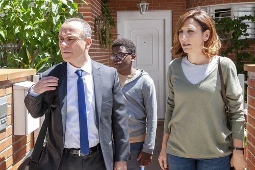 Nuria Díaz (Malena Alterio) y Jesús Gutiérrez (Javier Gutiérrez) junto a su hijo Yusuf (Yannick Nguenkam) en una escena de la tercera temporada de 'Vergüenza'.