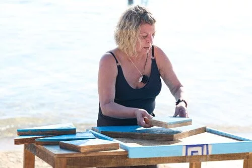 La presentadora y colaboradora de televisión Terelu Campos hace un puzzle en la primera prueba de recompensa del reality de aventura.