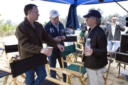 Tom Hanks y Steven Spielberg en el rodaje de una escena de la miniserie 'The Pacific' de HBO.