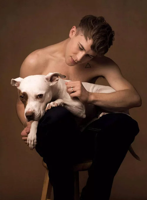 Tommy Dorfman, el actor que interpreta a Ryan en 'Por 13 razones', posa sexy abrazando y mirando a su perro para la revista Gay Times.