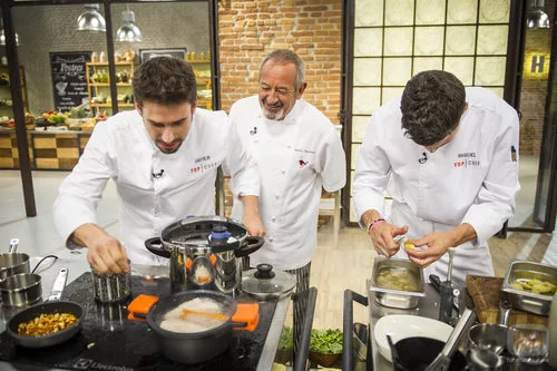 Karlos Arguiñano con Javier Estévez y Miguel Cobo en 'Top Chef'