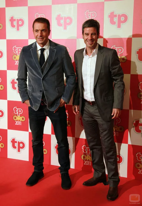 Los presentadores de 'Deportes Cuatro' Manu Carreño y Nico Abad en la alfombra roja de los TP de Oro 2011.