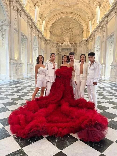 Raquel Caurin, Exon Arcos, Chanel Terrero, Pol Soto, María Pérez y Josh Huerta, durante la Alfonmra Turquesa de Eurovisión 2022.