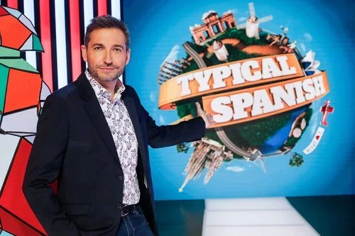 Frank Blanco conduce el show familiar 'Typical Spanish', donde dos equipos de celebrities compiten para demostrar sus conocimientos sobre la cultura española.