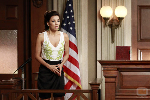 Gabrielle Solis (Eva Longoria) interrogada en el juicio de Bree en el último capítulo de 'Mujeres Desesperadas'