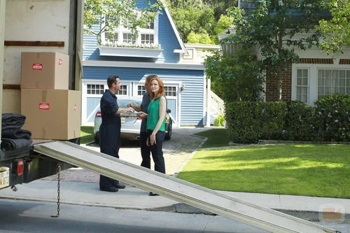 Bree y Trip observan un camión de mudanzas en el último episodio de 'Mujeres desesperadas'.