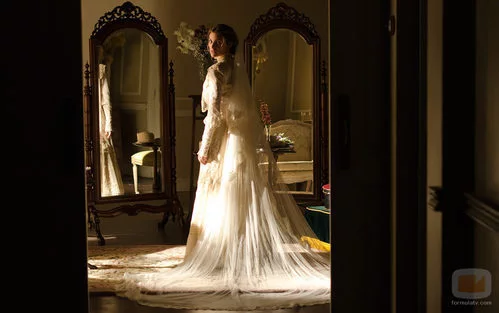 La actriz Amaia Salamanca luce su vestido de novia en la serie de Antena 3.