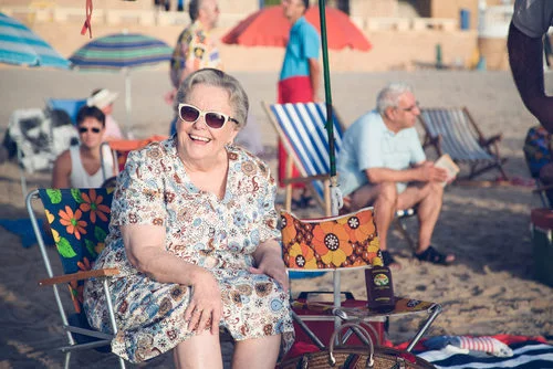 El personaje de María Galiana, Doña Herminia, toma el sol en la playa de Benidorm en la decimoctava temporada de la serie de RTVE.