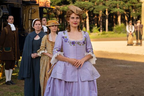 Adriana, interpretada por Rocío Suárez de Puga, llega a Valle Salvaje para casarse con Julio, el hijo de los duques de esa tierra.