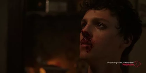 El joven actor exhibe sangre y heridas en su rostro durante una de las secuencias del biopic de Cristina Ortiz.