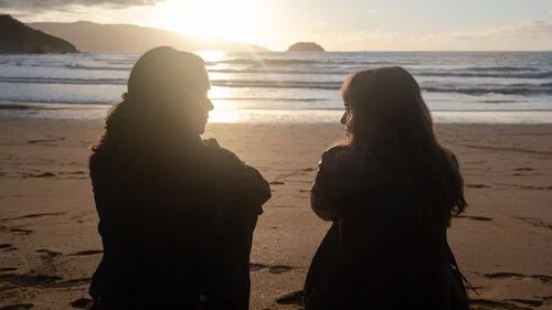 Los actrices son dos de las protagonistas de la ficción original de Netflix, en la que comparten un íntimo momento en la playa.