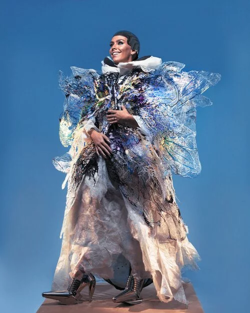 La presentadora Cristina Pedroche posa con la capa creada por BUJ Studio para la última noche del año de Antena 3.