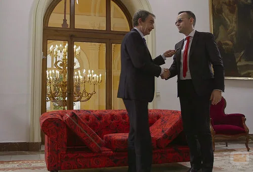 Zapatero y Risto Mejide se estrechan la mano en 'Viajando con Chester'