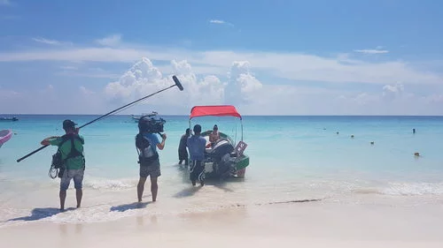 Rojo Cangrejo durante la grabación de 'Viajeras con B'