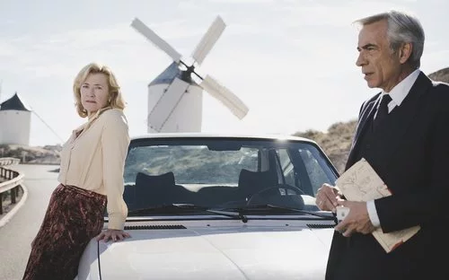 Antonio y Merche delante de unos molinos manchegos en la temporada 20 de 'Cuéntame cómo pasó'