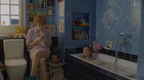 Los personajes de Aixa Villagrán y Leticia Dolera en 'Vida perfecta'. La primera mira el móvil mientras la segunda se está bañando.