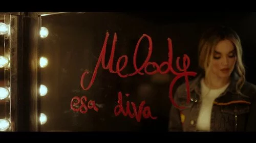 Melody escribe en el espejo en el videoclip de 'Esa diva'