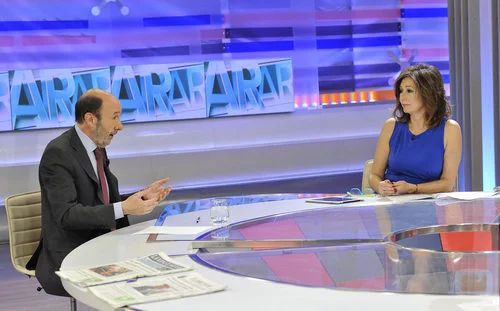La periodista entrevistó el jueves, 18 de abril de 2013, al secretario general del PSOE.