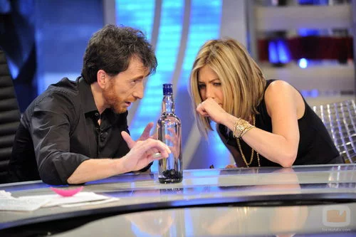 Pablo Motos juega con Jennifer Aniston durante su visita.