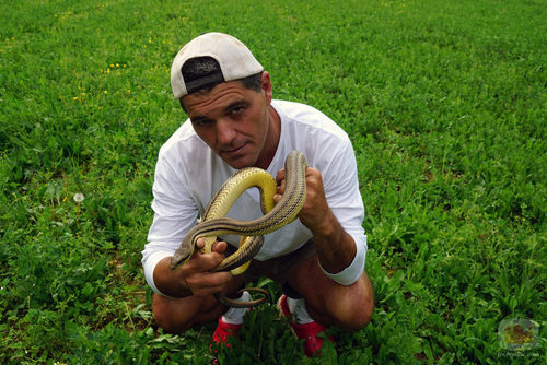 Wild frank se desplaza a Cocullo, un pueblo italiano para disfrutar de la fiesta de las serpientes. Aquí posa con uno de los animales.