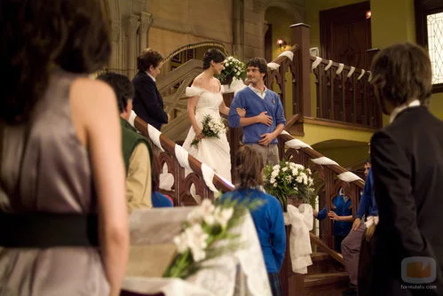 Iván (Yon González) acompaña a María (Marta Torné) al altar en el capítulo 'Hasta que la muerte nos separe' de 'El internado'