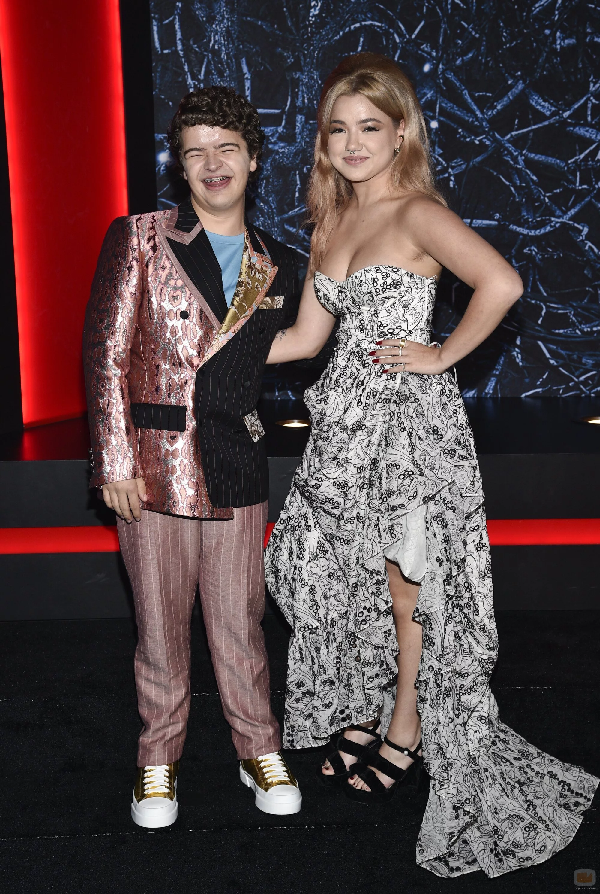 Gaten Matarazzo y su novia en la première de 'Stranger Things 4'