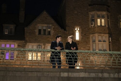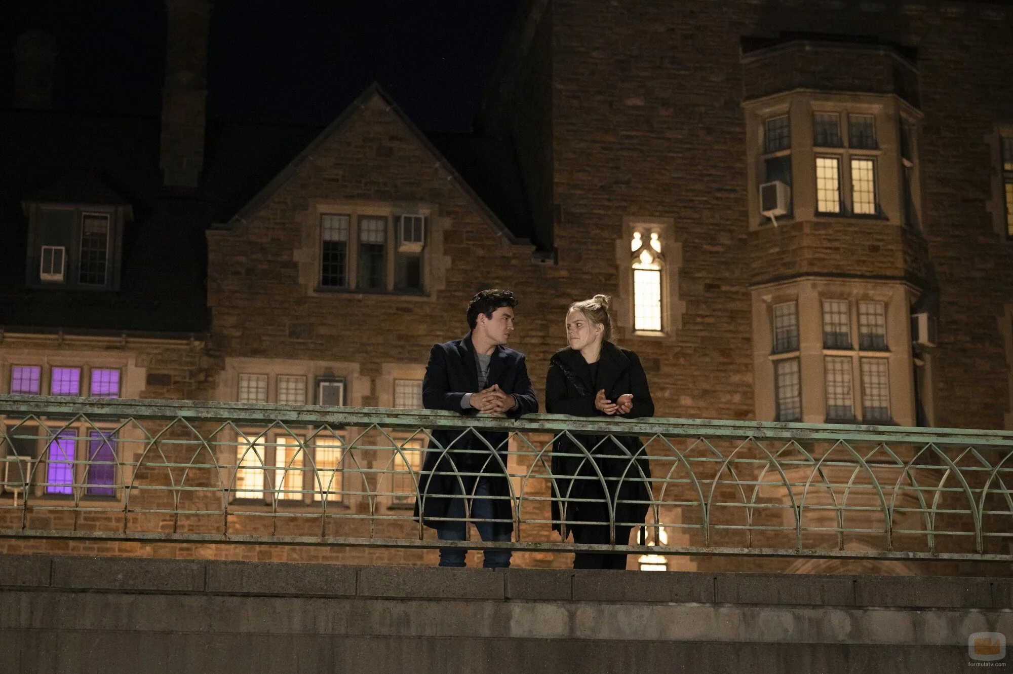 Gavin Leatherwood y Reneé Rapp aparecen en una foto del episodio 1x01 de la serie 'The Sex Lives of College Girls'.