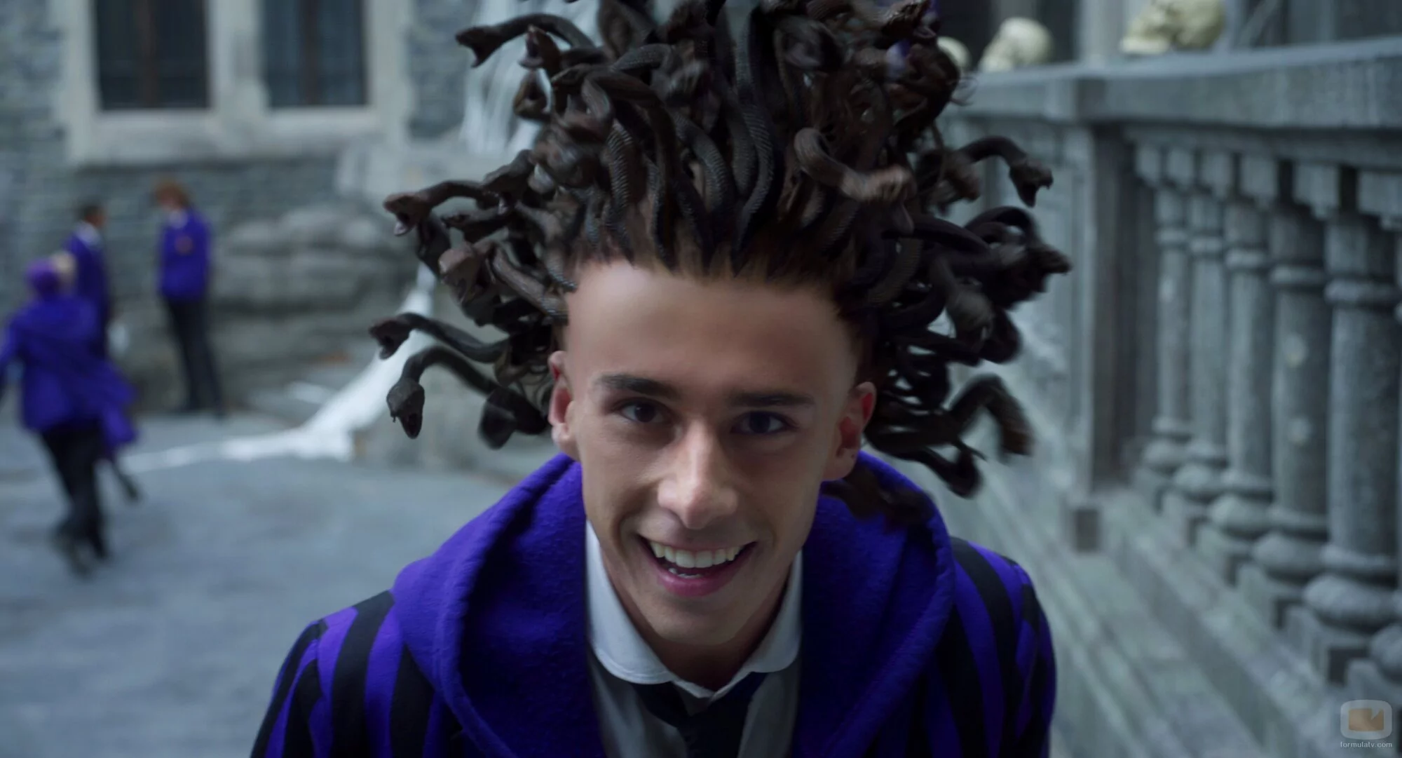 El actor Georgie Farmer (Ajax Petropolus) en una escena promocional del capítulo 2x02 de 'Miércoles', la serie de televisión de Netflix.
