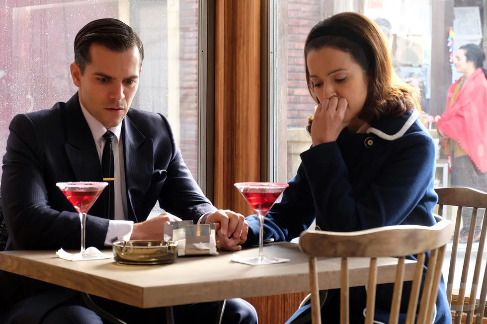 (1x05) Gerardo (Marc Clotet) y Clara (Verónica Sánchez), con aspecto preocupado, comparten una copa en 'El Caso'.