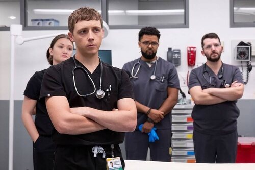 El intérprete Gerran Howell (Dr. Dennis Whitaker) en una imagen promocional del capítulo 1x09 de 'The Pitt' con fecha de estreno el Jueves, 27 de Febrero de 2025.