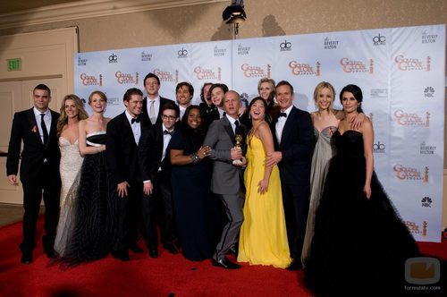 El equipo de 'Glee' tras recoger el Globo de Oro a la Mejor Serie de Comedia o Musical.
