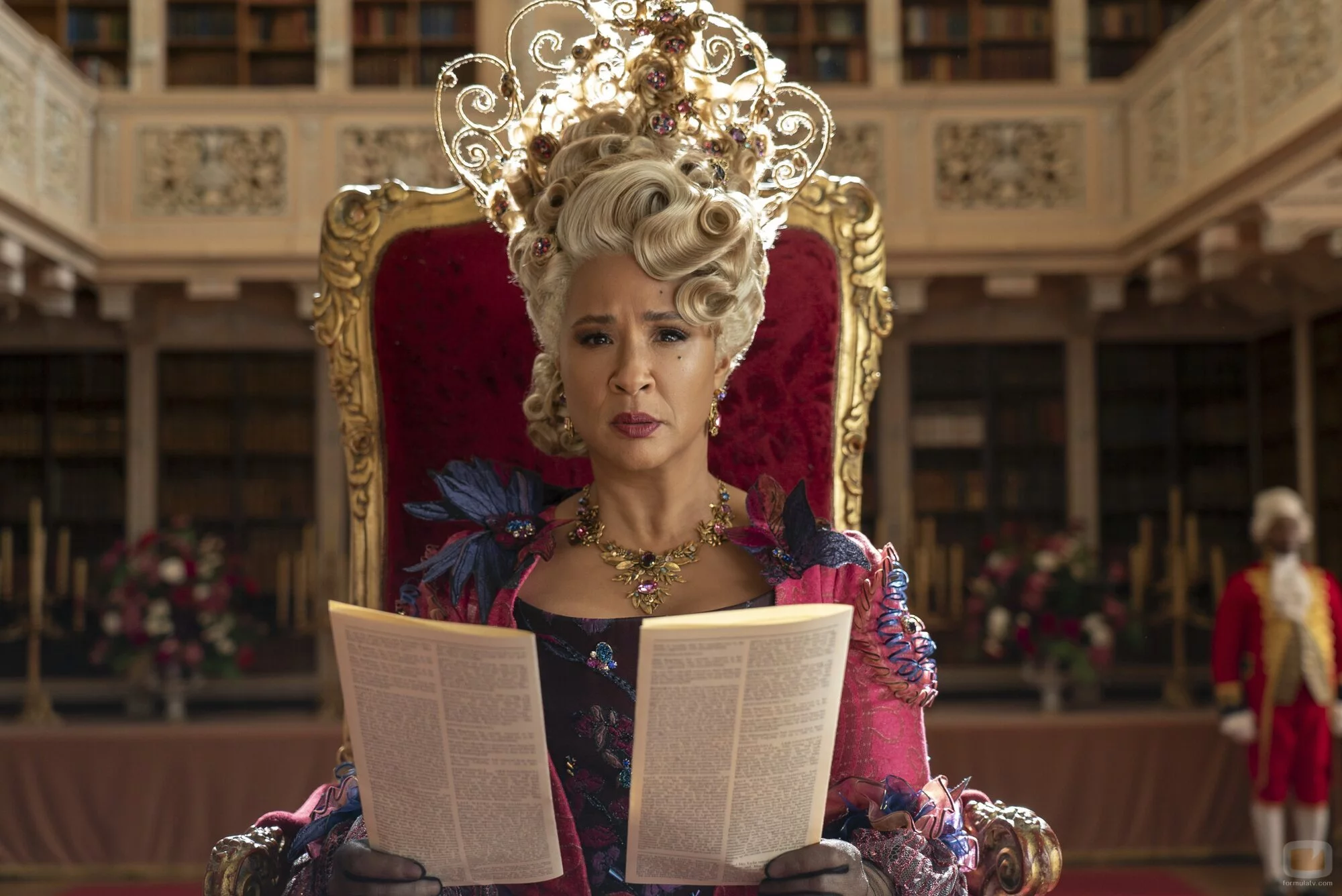 La intérprete Golda Rosheuvel (Reina Charlotte) en una foto promocional del capítulo 3x07 de la serie 'Los Bridgerton'.