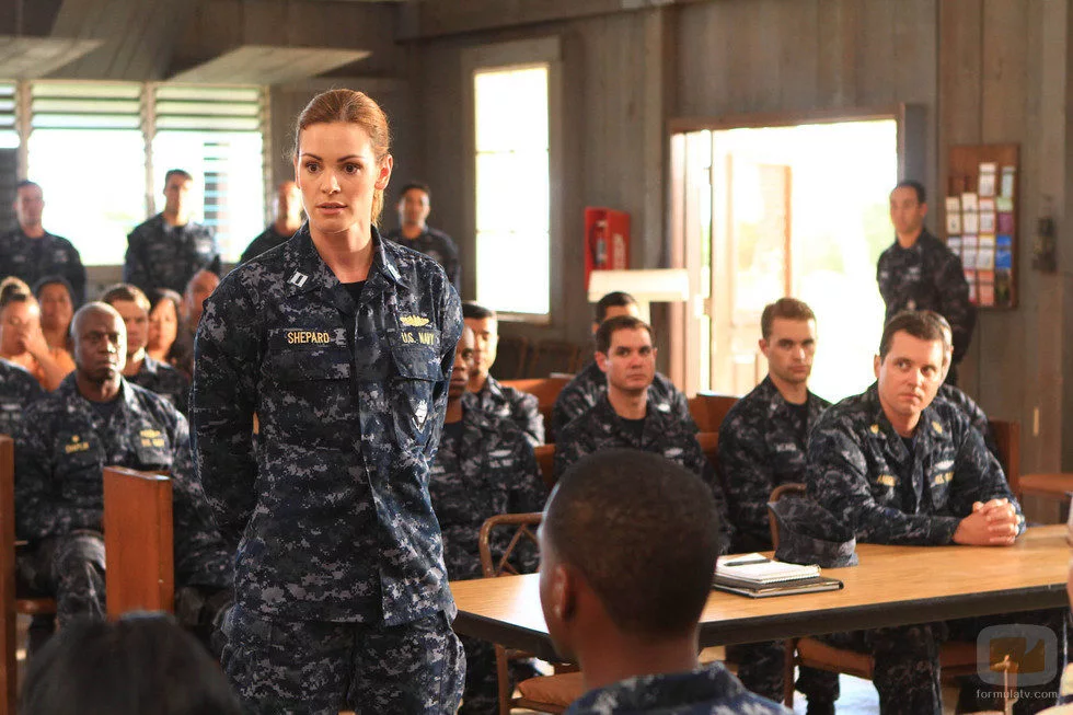 Grace Shepard hablando con sus compañeros en el nuevo episodio de 'Last Resort'.