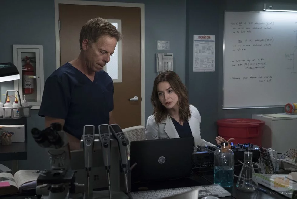 Greg Germann y Caterina Scorsone en la temporada 15 de 'Anatomía de Grey'