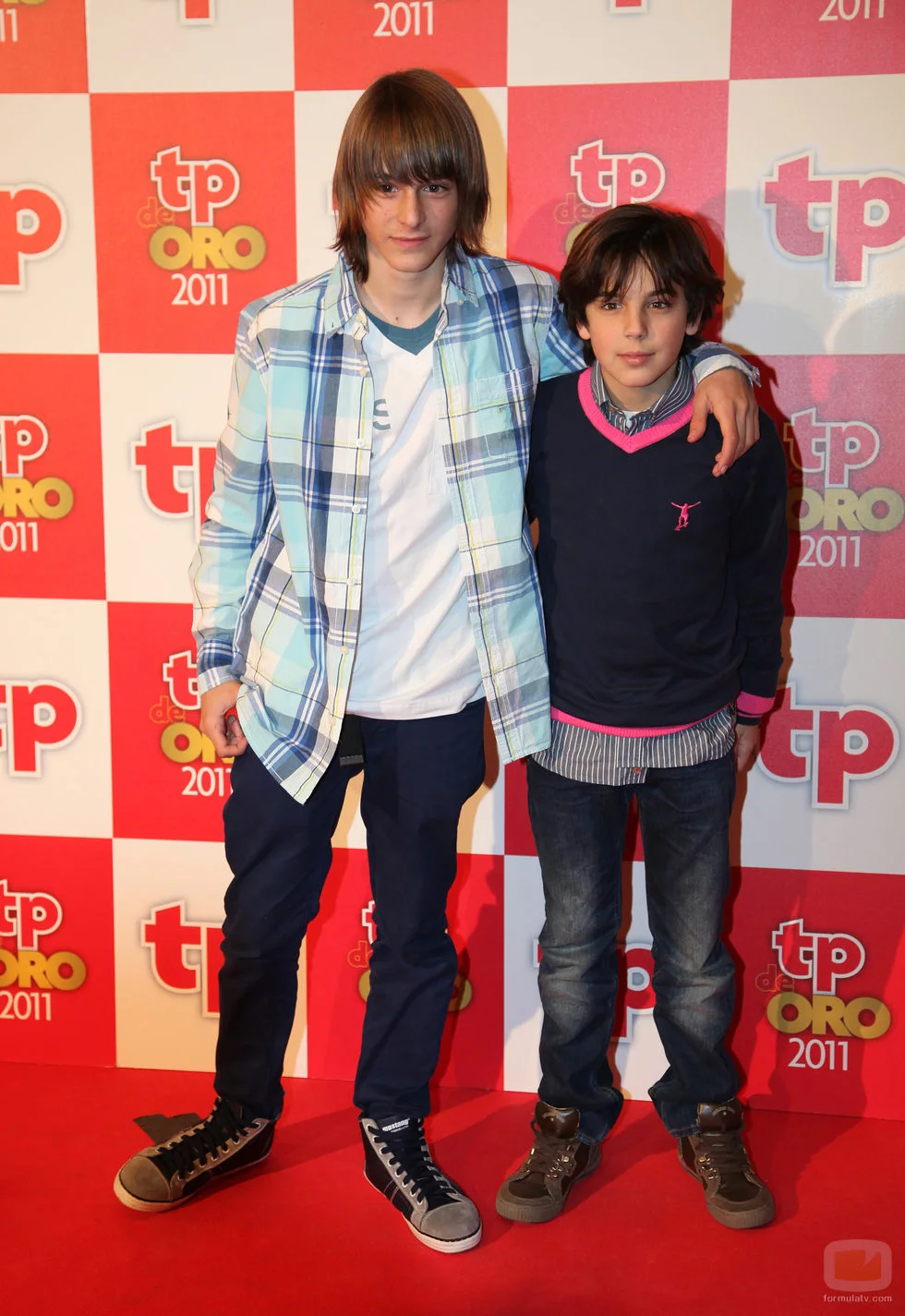 Los jóvenes actores Guillermo Campra y Óscar Casas en la alfombra roja de los Premios TP de Oro 2011 en Madrid.