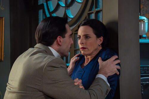 Cristina Fernández Pintado y Guillermo Serrano aparecen en una foto del capítulo 'Lunes 9 de febrero de 2026' de 'La promesa'.